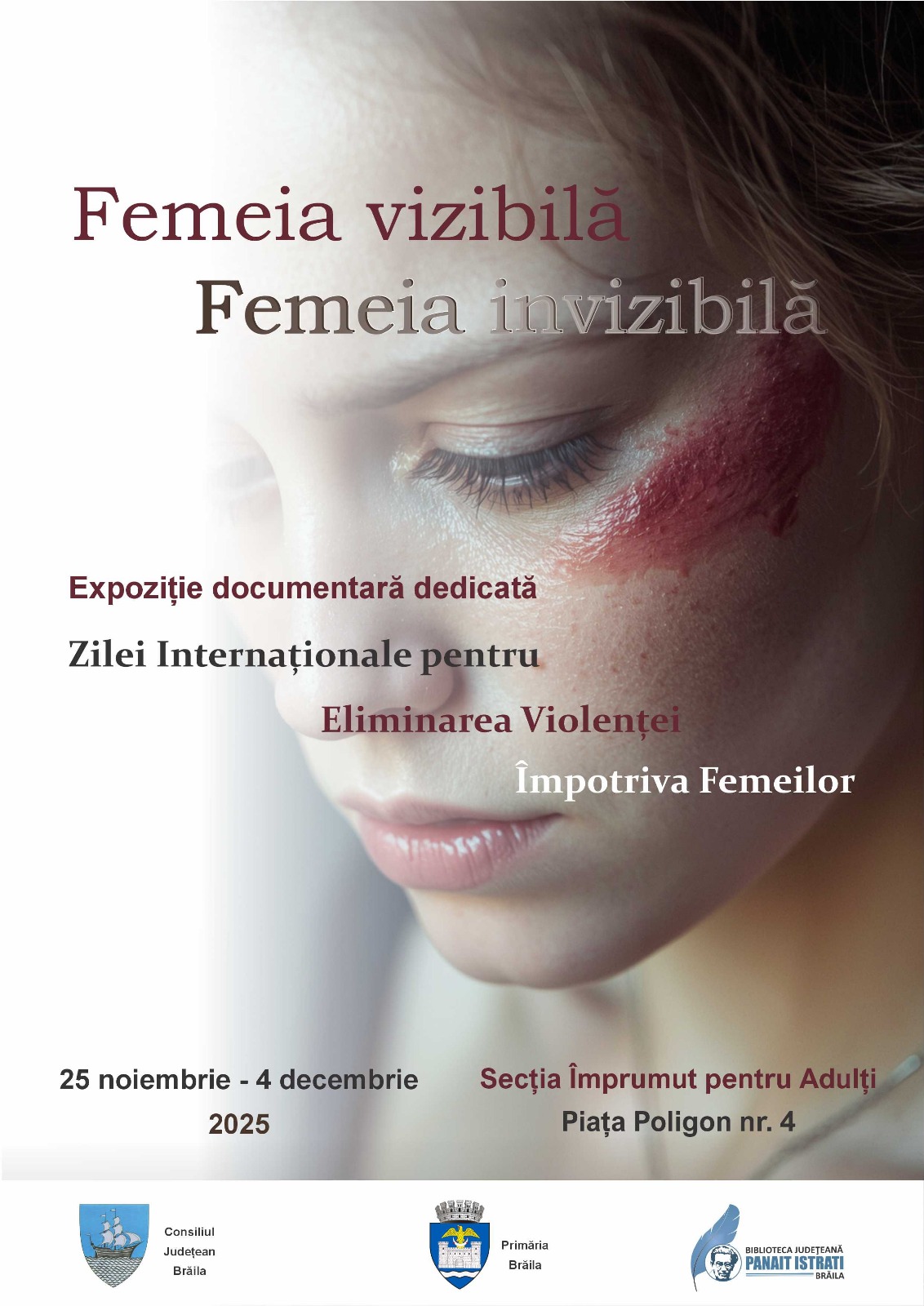 Biblioteca “Panait Istrati” Braila Piața Poligon nr. 4, Brăila, Brăila, RomâniaÎn perioada 25 noiembrie - 4 decembrie 2025 Secția Împrumut Carte pentru Adulți din cadrul Bibliotecii organizează o expoziție documentară cu ocazia Zilei Internaționale pentru Eliminarea Violenței împotriva femeilor. Expoziția intitulată ,,Femeia vizibilă, femeia invizibilă" conține volume aflate în colecțiile […]