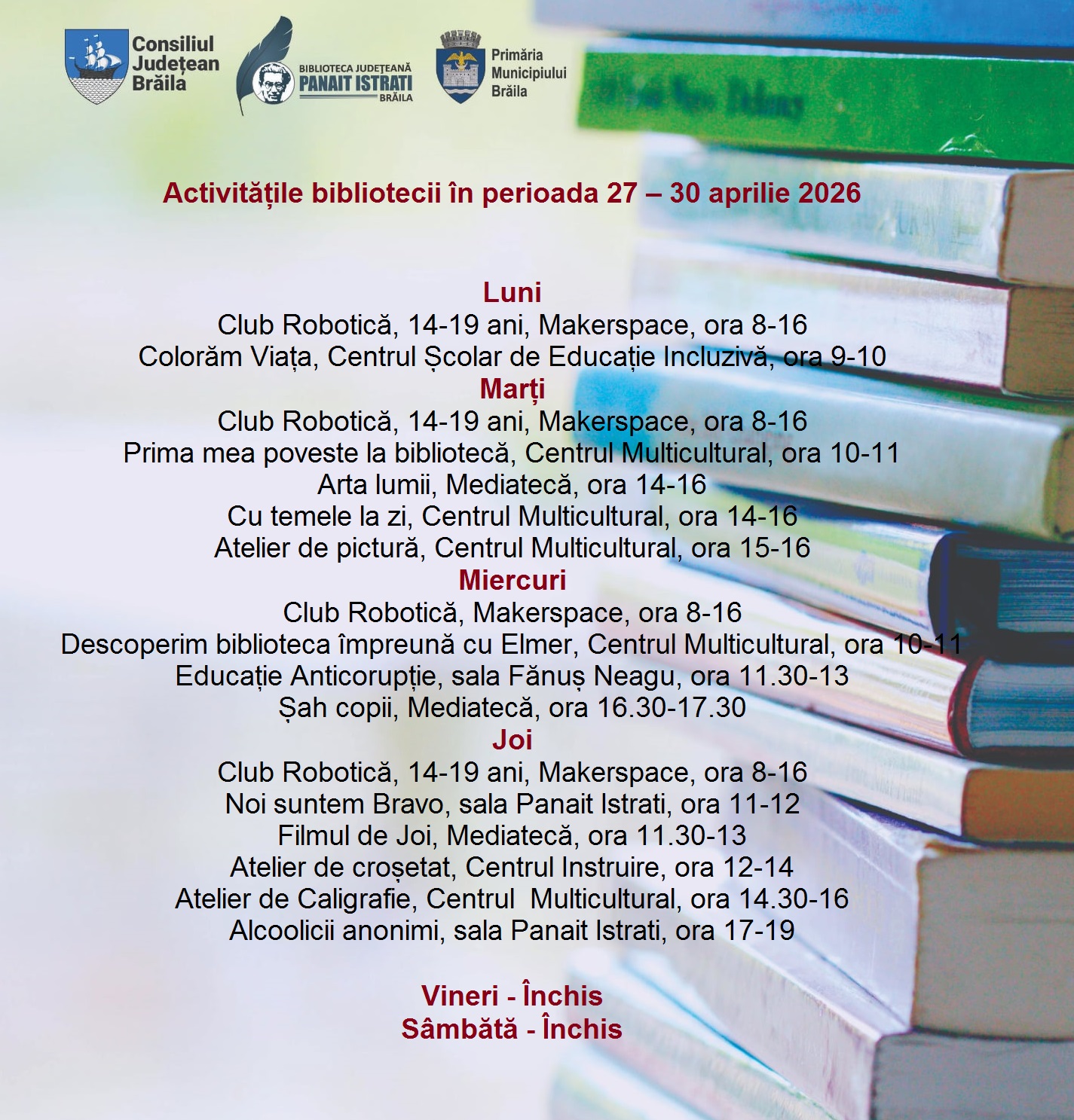 Vă invităm la un nou spectacol desfășurat în cadrul proiectului educațional „Muzica lumii între sunet și suflet”, dedicat de această dată universului artistic al Rusiei. Manifestarea „Muzica Rusiei” va avea loc pe 24 aprilie 2026, începând cu ora 16:30, la […]